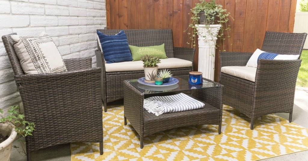 Head on over to Jane.com where you can get this Walker Edison 4 Piece Patio Chat Set in brown for ONLY $299.99 shipped (regularly $799.99)! This set is perfect for your deck or patio!