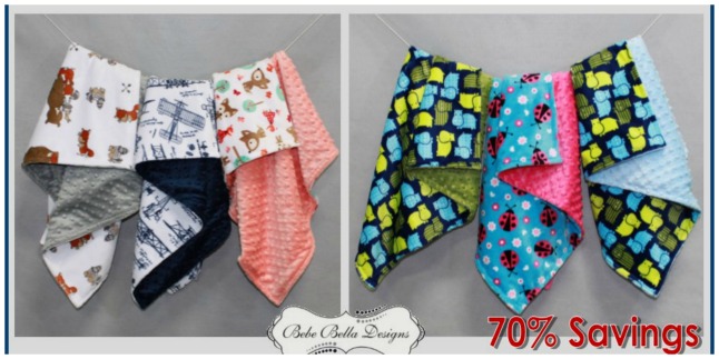 Head over to BebeBellaDesigns.com where select Infant Print Collections are up to 70% off with prices starting under $4!  Shipping is free with an order of $100.  One deal you can grab is this Minky Chenille Printed Crinkle Toy for only $3.60 – regularly $12. (pictured below)