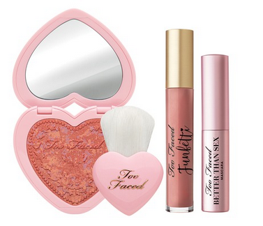 Head on over to TooFaced.com where you can get this Love Fool Set for ONLY $30! Included with this set is a full-sized FunFetti gloss, full-sized Love Flush Blush in Funfetti, Heartbuki Brush, and a Deluxe Better Than Sex Mascara.