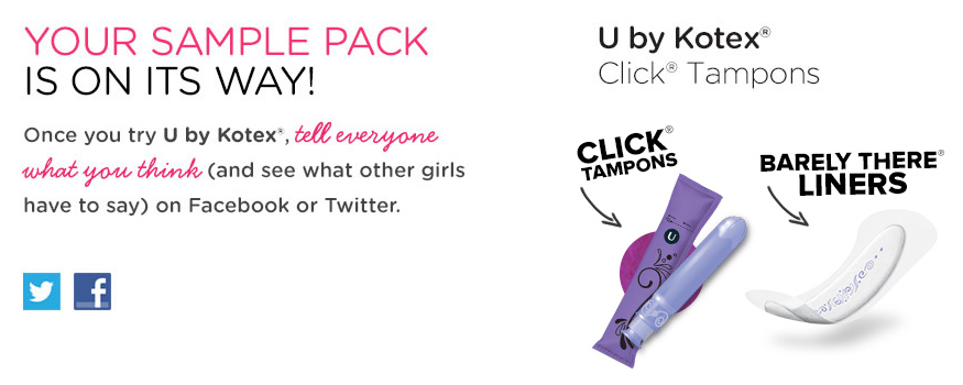 FREE Kotex tampons, pads or liners sample kit!