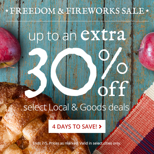 Through tomorrow, July 5th, you can save up to an extra 30% off local and goods deals from Groupon.  This is valid in select cities and no promo code is needed – prices are as marked