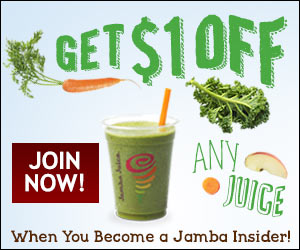 Head on over to Jamba Juice, enter your zip code and become a Jamba Insider to score a $1 off ANY Jamba Juice coupon! The coupon will be sent via email.