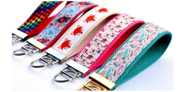 Keep your hands free with these keychain wristlets, made of soft cotton with a pop of color on the outside.