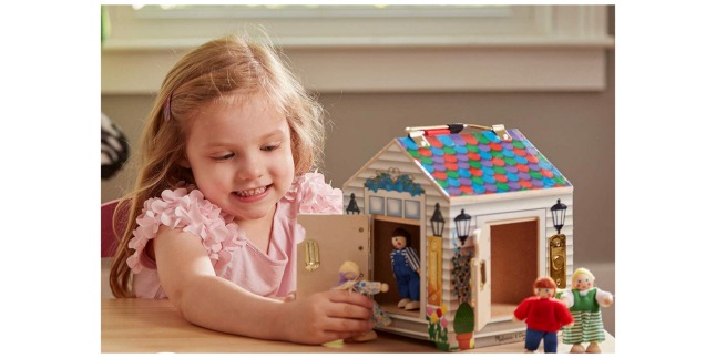 Head over to Amazon.com where you can score the lowest price on this Melissa & Doug Take-Along Wooden Doorbell Dollhouse!