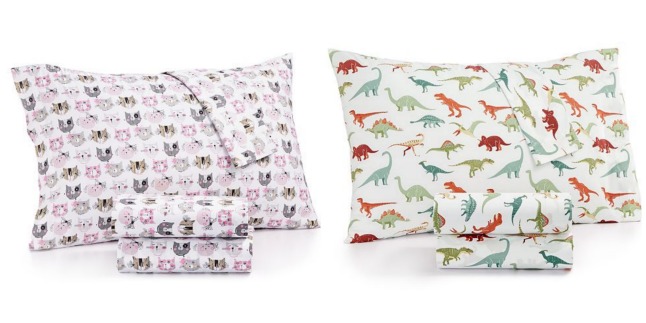 Right now, Macy’s has these Kids Zone Juvie 3-Piece Twin Sheet Sets for just $7.99 right now (regularly $30)! There are two designs left in the twin size – cats and dinosaurs.  If you need a full size set, these are priced at $15.99.