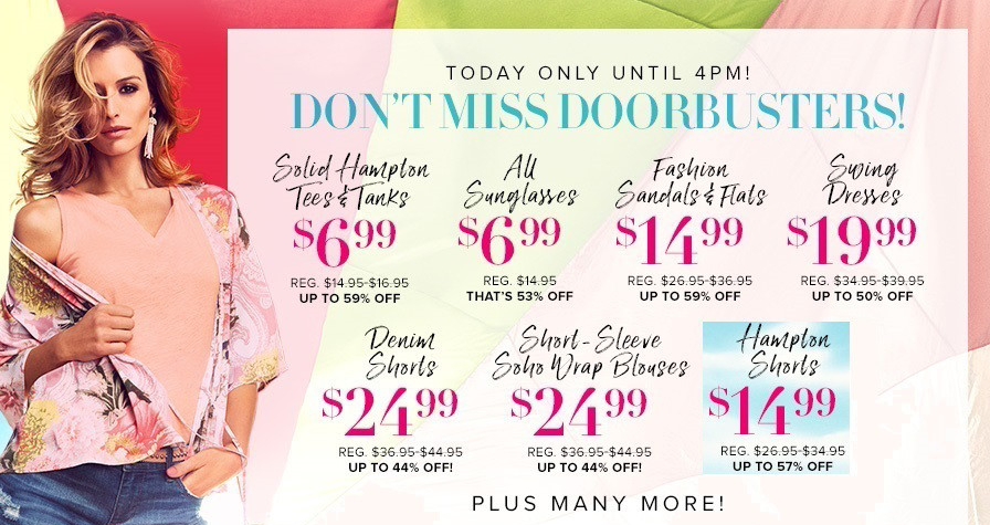 Today only, New York and Company are offering up FREE shipping on everything! Plus, until 4pm today you can save big on their doorbusters! You can grab select tees & tanks for $6.99 (reg. up to $16.95), Sunglasses $6.99 each (reg. $14.95) and more!