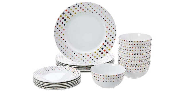 Head over to Amazon.com where you can grab a nice deal on this AmazonBasics 18-Piece Dinnerware Set – Dots, Service for 6. This set includes 6 each: 10.5-inch dinner plate, 7.5-inch salad plate, and 5.5-inch bowl and they are dishwasher, freezer, and microwave safe.