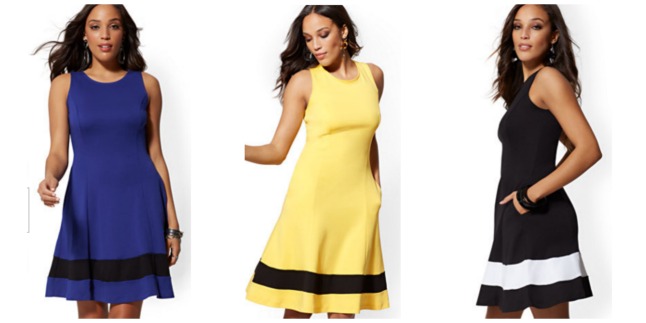 Head on over to NewYorkandCompany.com where you can get these Colorblock Fit and Flare cotton dresses for only $10 each – regularly $34.95. There are 5 colors to choose from and shipping is free with a $50 order.