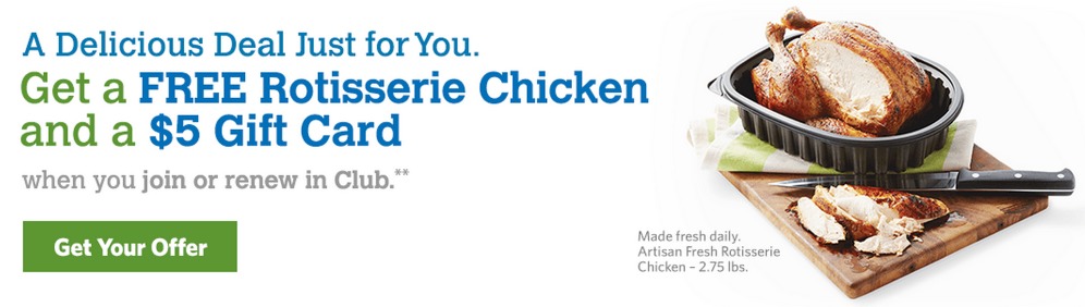 Sam’s Club: Free Rotisserie Chicken & $5 Gift Card – New Or Renewing Members!