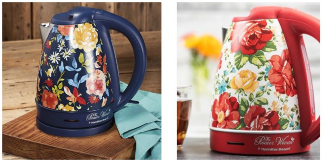 The Pioneer Woman 1.7 Liter Electric Kettle by Hamilton Beach in Red/Vintage Floral or Blue/Fiona Floral