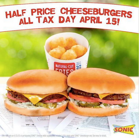 Sonic Drive-Ins: Half Price Cheeseburgers All Day April 15th!