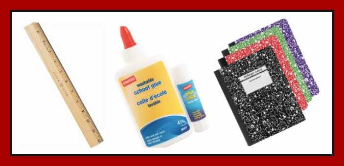 Staples School Glue, 4 oz – 10¢ (Reg. $1.49) Staples Cap Erasers, Pink, Dozen – 25¢ (Reg. $1.49) Staples Dual Dome Pencil Sharpener – 25¢ (Reg. $1.99) Staples Glue sticks, 4/pack – 25¢ (Reg. $2.49) Staples 1-subject notebook – 25¢ Staples 12″ Beveled Ruler – 35¢
