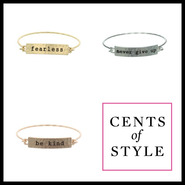 Looking for a great mother’s day or graduation gift or maybe something to give to a friend? Cents of Style just launched a brand-new line of Inspiring Word Bracelets and through April 30, 2015, they are offering these for just $9.95 shipped when you use coupon code TRIBE at checkout. You can choose between 15 different word designs in Gold, Rose Gold and Silver styles!