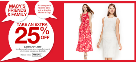 Macy’s is offering a $10 off a $25 purchase coupon (use promo code FOUTH25) or an Extra 20% off this weekend (use promo code FOURTH)! You can use this coupon July 2nd through July 5th. This coupon can be used on sale & clearance merchandise so be sure to browse around for some awesome deals! Some exclusions apply, so be sure to read the fine print.