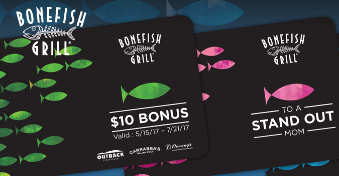 Bonefish Grill: Enjoy a $10 bonus card with the purchase of $50 in gift cards.