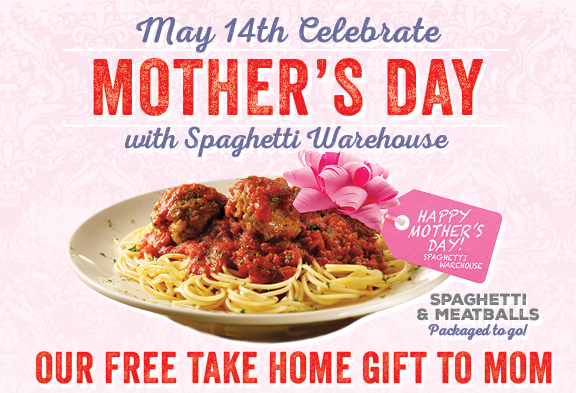 Spaghetti Warehouse: Purchase a Mother’s Day Meal and get spaghetti and meatballs packaged to take home.