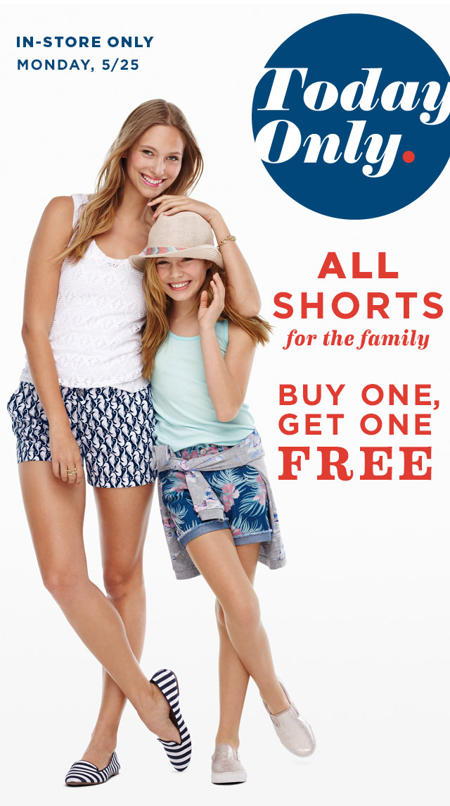 If you are out shopping today, swing by Old Navy where they are offering a FREE pair of shorts when you buy one! This awesome deal is good in-store only and only until 1pm! Plus, take an extra 30% off (no promo code needed) your order! (this excludes everyday steals, hot deals and clearance)