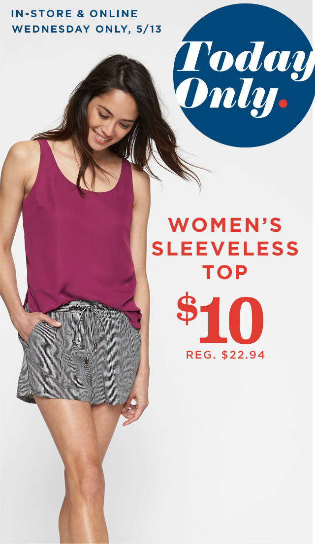 Head on over to Old Navy, where for today only you can score women’s sleeveless tops for just $10 each (reg. $22.94)! These are available in stores or online.