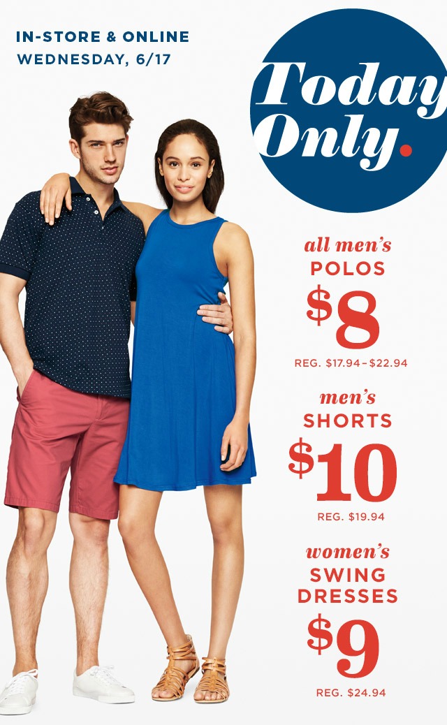 Old Navy is offering up great sales for the family right now in-stores and online! You can get up to 40% off kids clothes with tees starting at $6, shorts from $10 and swimwear starting at $10! Also, all dresses and skirts are on sale up to 40% off with skirts starting at $12! And grab 40% off hundreds of summer styles for men! Shipping is free with orders of $50 or more.