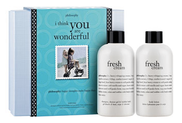 If you are a fan of Philosophy products like me, you will love this deal! For today only or while supplies last, you can get this Philosophy “I Think You are Wonderful” Gift Set for just $10.20 shipped (regularly $26)! This is from Nordstrom.comafter $8 cash back from ShopAtHome.com. This set includes 8 ounce bottles of Philosophy fresh cream shampoo, shower gel & bubble bath AND fresh cream body lotion. I LOVE this scent!
