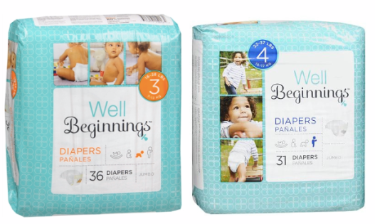 Well Beginnings Jumbo Pack Diapers 23 to 50 pack, Buy 1 Get 1 FREE Online price $8.79 Use the $1.50/1 Well Beginnings diapers coupon found here (limit 1 per customer) Final cost $7.29, just $3.65 each (as low as 7¢ per diaper)!
