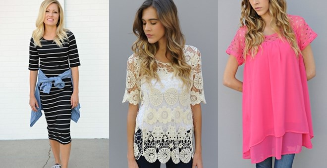 Hurry on over HERE to get three best selling items in a grab bag for ONLY $19.99 with free shipping! Each grab bag will include 3 items such as tops, cover ups, rompers and tunics!